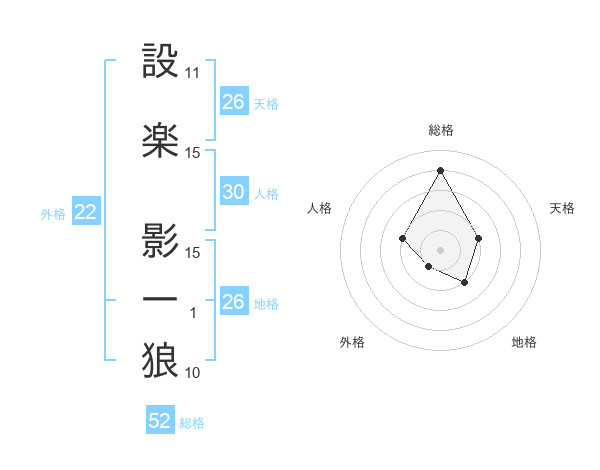 設楽 影一狼さんの総格は52画の4点