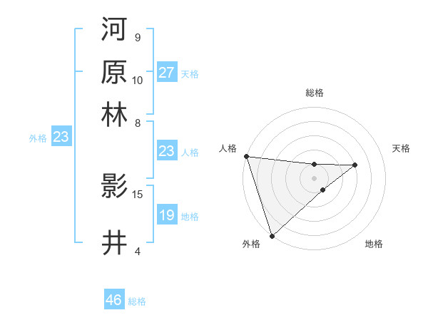 河原林 影井さんの外格は23画の5点!