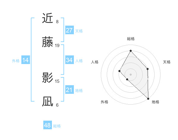 近藤 影凪さんを姓名の画数から五運を鑑定