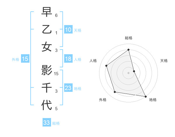 早乙女 影千代さんの総格は33画の4点!