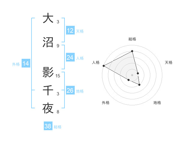 大沼 影千夜さんを姓名の画数から五運を鑑定