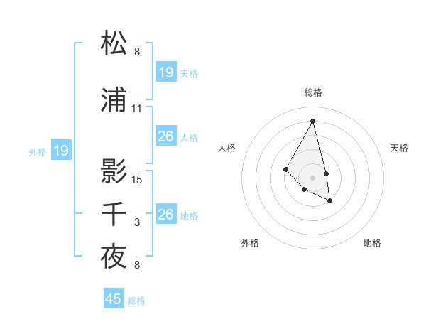 松浦 影千夜さんの総格は45画の4点