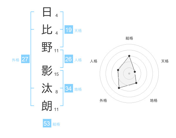 日比野 影汰朗さんを姓名の画数から五運を鑑定