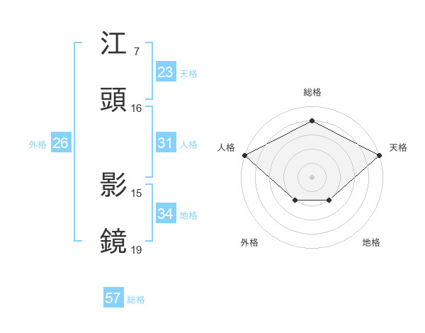 江頭 影鏡さんを姓名の画数から五運を鑑定