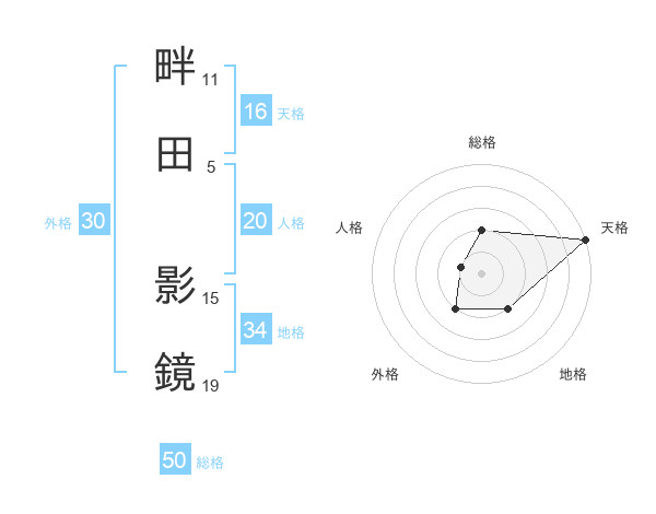 畔田 影鏡さんの天格は16画の5点!