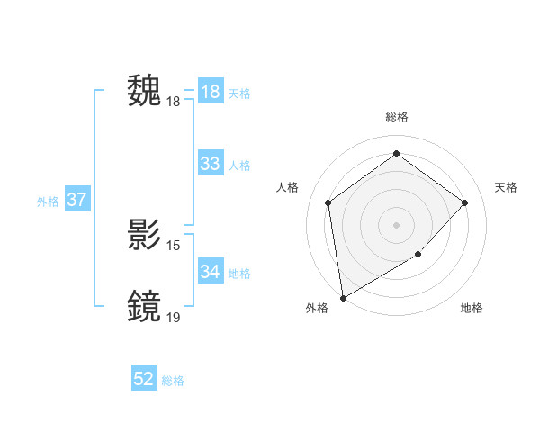 魏 影鏡さんの総格は52画の4点!