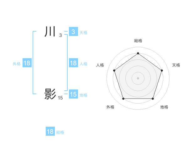 川 影さんの総格は18画の4点!