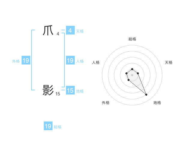 爪 影さんの総格は19画の1点!