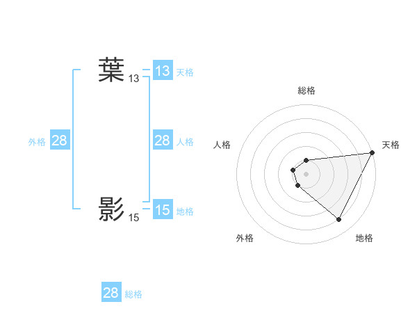 葉 影さんの外格は28画の1点!