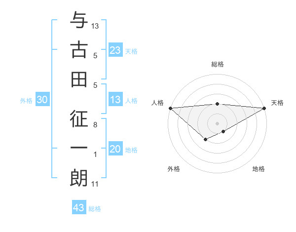 与古田 征一朗さんを姓名の画数から五運を鑑定