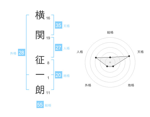 横関 征一朗さんを姓名の画数から五運を鑑定