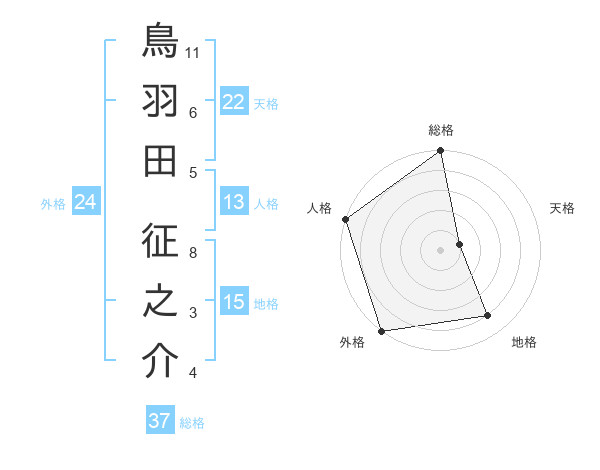 鳥羽田 征之介さんを姓名の画数から五運を鑑定