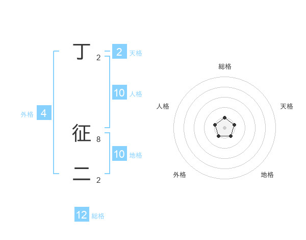 丁 征二さんの総格は12画の1点!