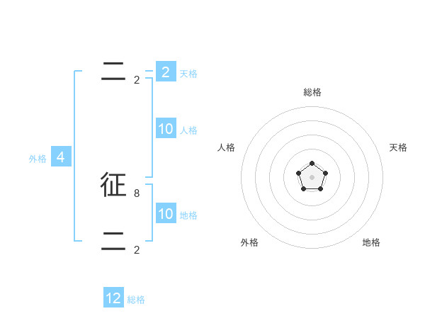 二 征二さんの総格は12画の1点!