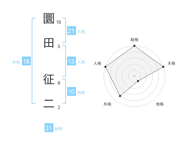 圜田 征二さんの天格は21画の5点!