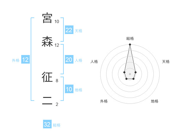 宮森 征二さんの総格は32画の5点!