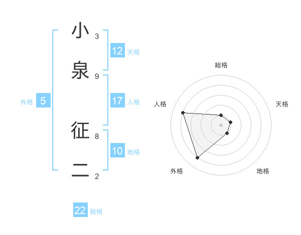 小泉 征二さんを姓名の画数から五運を鑑定