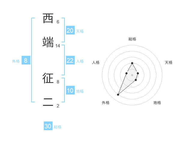 西端 征二さんの総格は30画の2点!