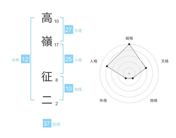 高嶺 征二さんを姓名の画数から五運を鑑定