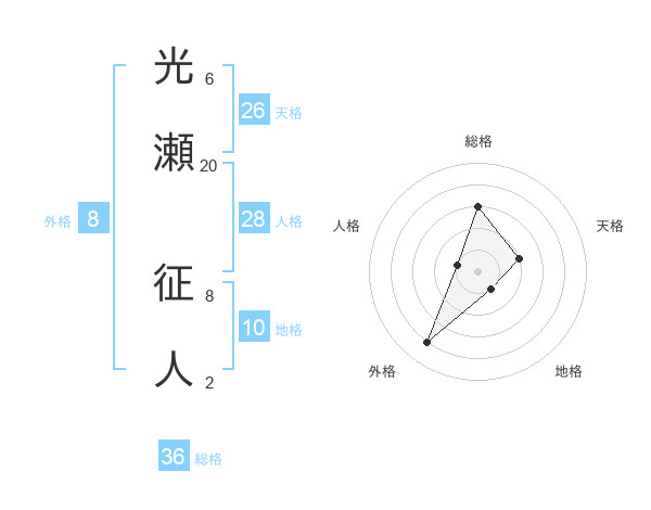 光瀬 征人さんの天格は26画の2点!