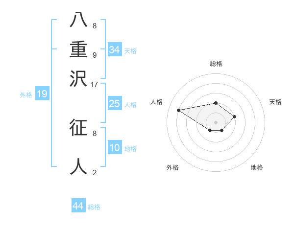 八重沢 征人さんの総格は44画の2点!