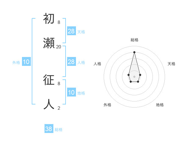 初瀬 征人さんの総格は38画の4点!
