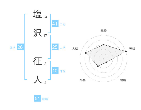 塩沢 征人さんの総格は51画の3点!