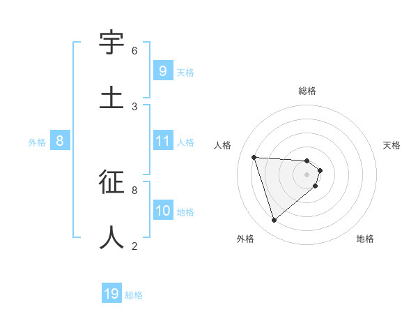 宇土 征人さんの総格は19画の1点!
