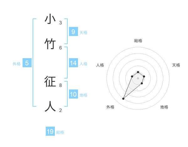 小竹 征人さんを姓名の画数から五運を鑑定