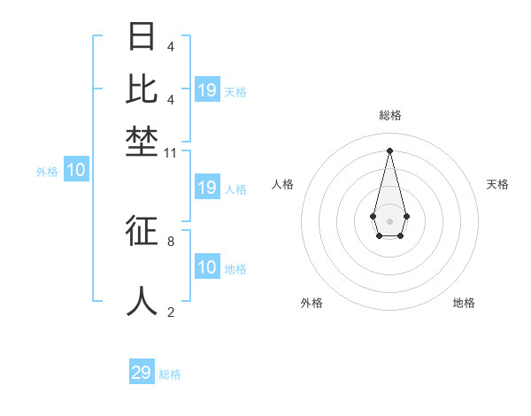 日比埜 征人さんを姓名の画数から五運を鑑定