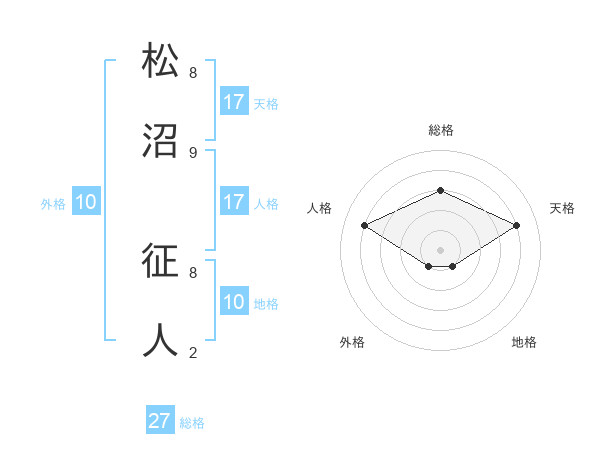 松沼 征人さんの総格は27画の3点!