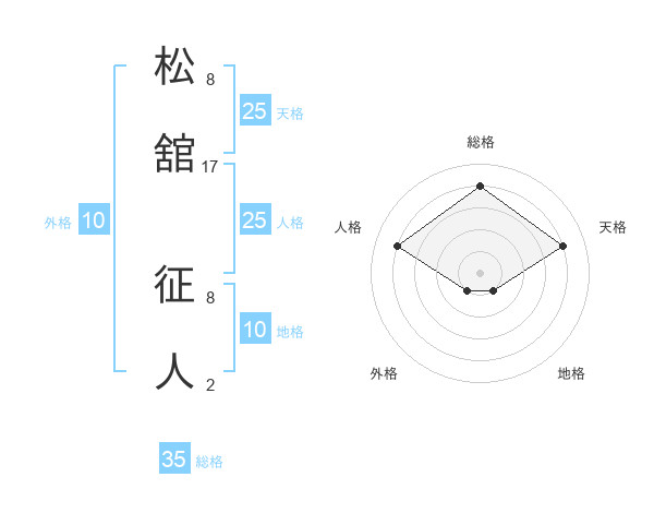 松舘 征人さんの天格は25画の4点!