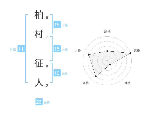 柏村 征人さんの総格は26画の2点!