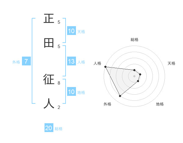 正田 征人さんの総格は20画の1点!