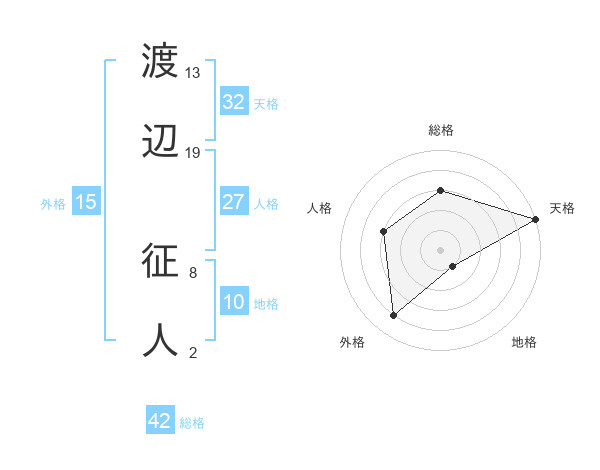 渡辺 征人さんを姓名の画数から五運を鑑定