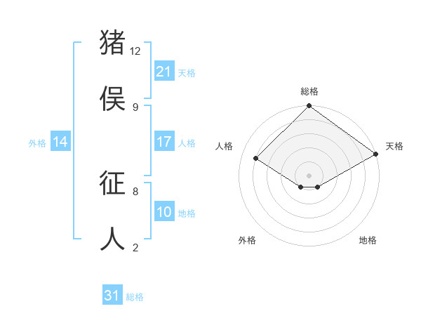 猪俣 征人さんの天格は21画の5点!