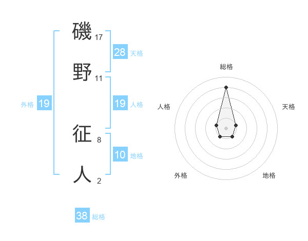 磯野 征人さんの総格は38画の4点!