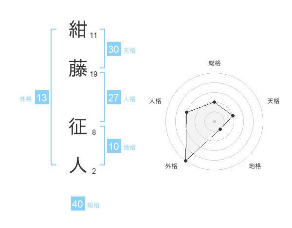 紺藤 征人さんを姓名の画数から五運を鑑定
