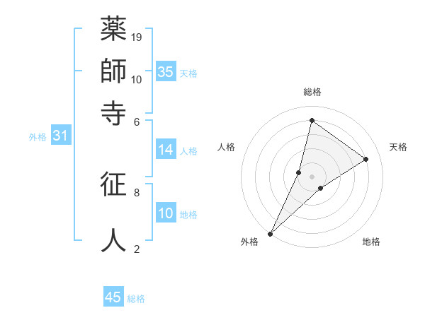 薬師寺 征人さんの総格は45画の4点!