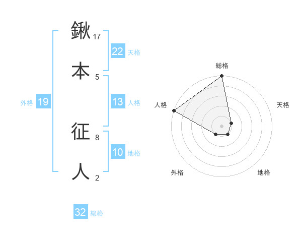 鍬本 征人さんを姓名の画数から五運を鑑定
