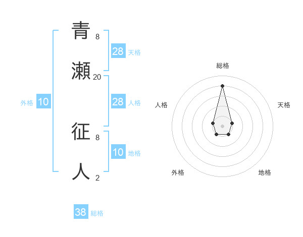 青瀬 征人さんの総格は38画の4点!