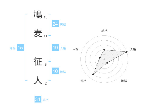 鳩麦 征人さんの総格は34画の2点!