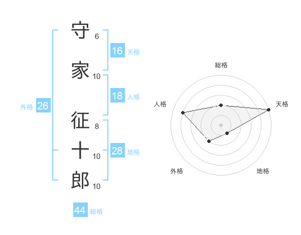 守家 征十郎さんを姓名の画数から五運を鑑定