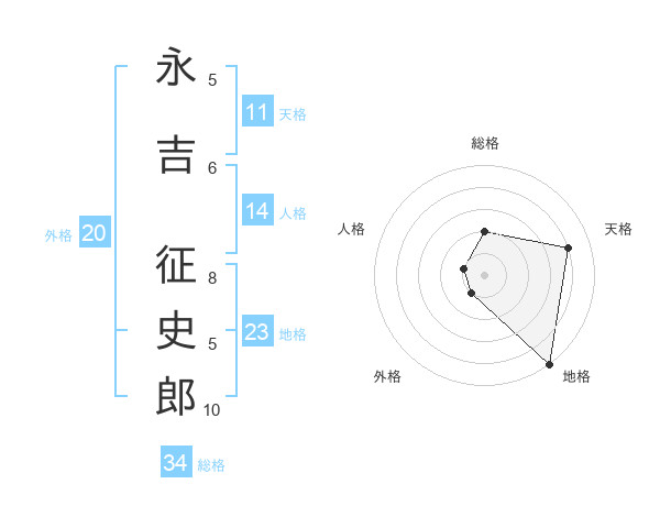 永吉 征史郎さんの総格は34画の2点!