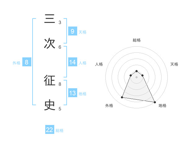 三次 征史さんの地格は13画の5点!