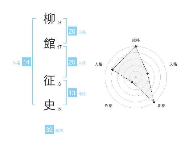 柳館 征史さんの総格は39画の5点!