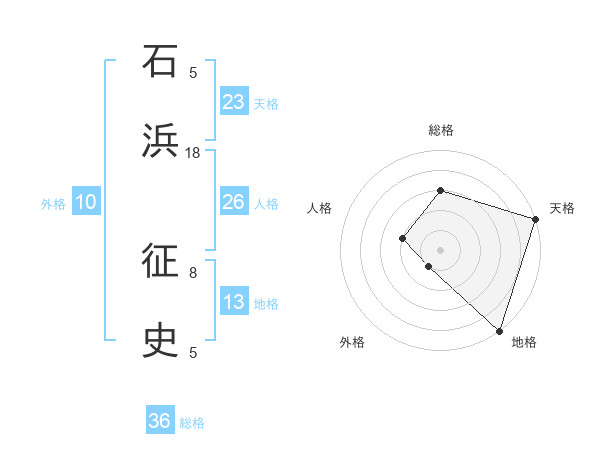 石浜 征史さんの天格は23画の5点!