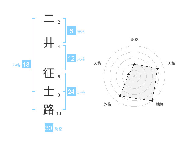 二井 征士路さんの総格は30画の2点!