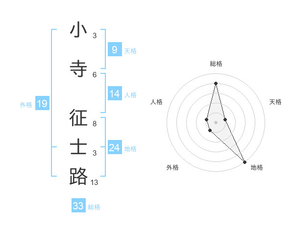 小寺 征士路さんを姓名の画数から五運を鑑定