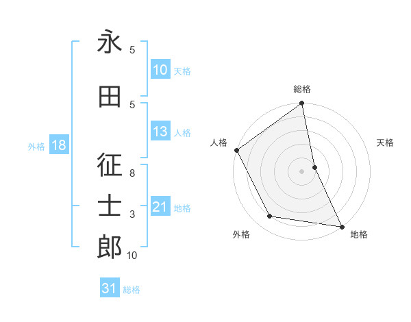 永田 征士郎さんの総格は31画の5点!